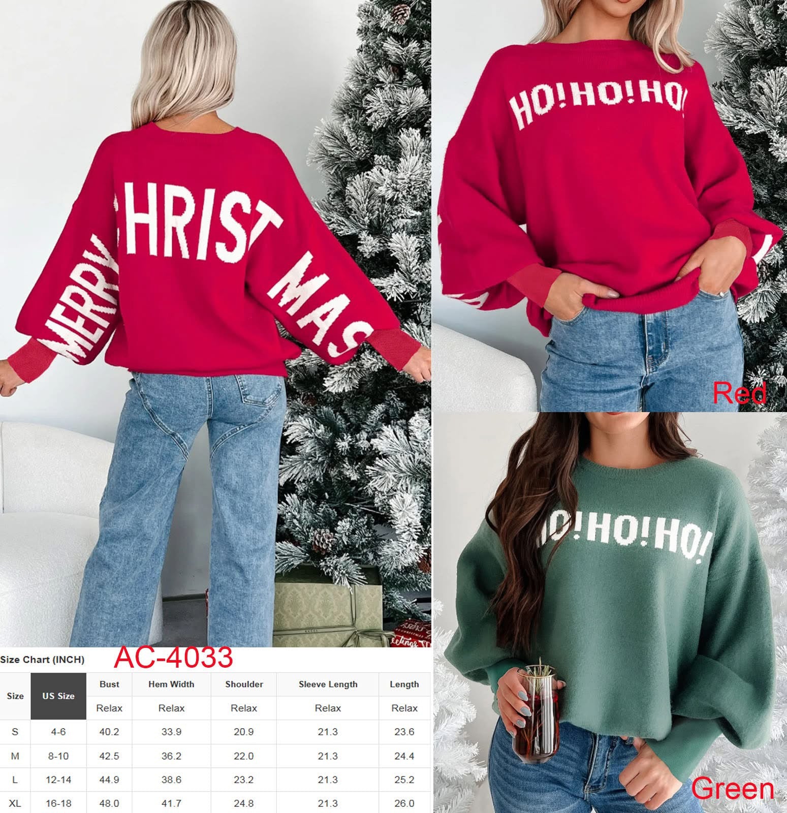 HO HO HO MERRY CHRISTMAS Drop Shoulder Loose Sweater