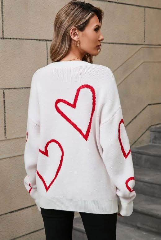Red & White Heart Sweater