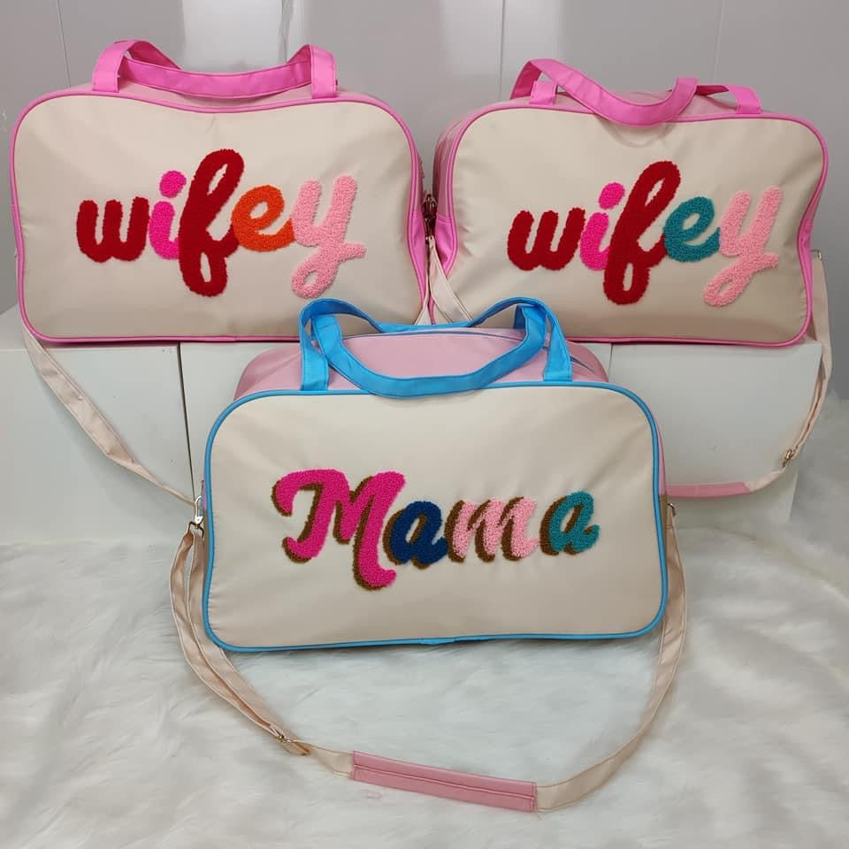 Wifey READY TO SHIP Mama Travel Overnight Chenille patch Duffle bag